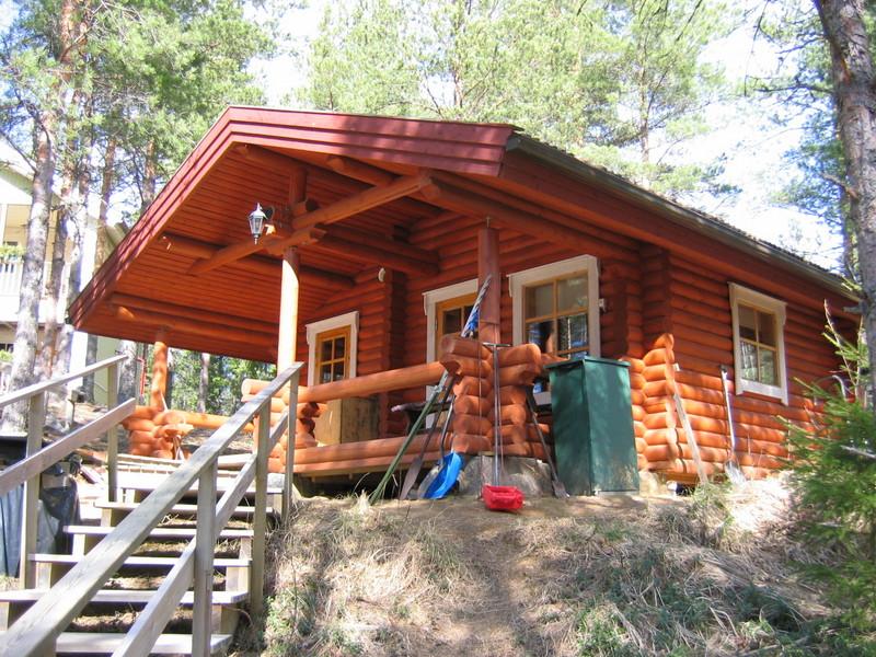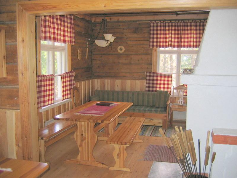 Päämökki 63 m² 2-kerroksinen, hyvin varusteltu, sähköistetty maja. Vuodepaikat 10 hengelle.