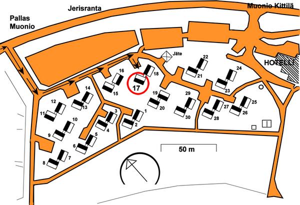 Jerisrannan mökit sijaitsevat 50 - 200 metrin päässä hotellilta.